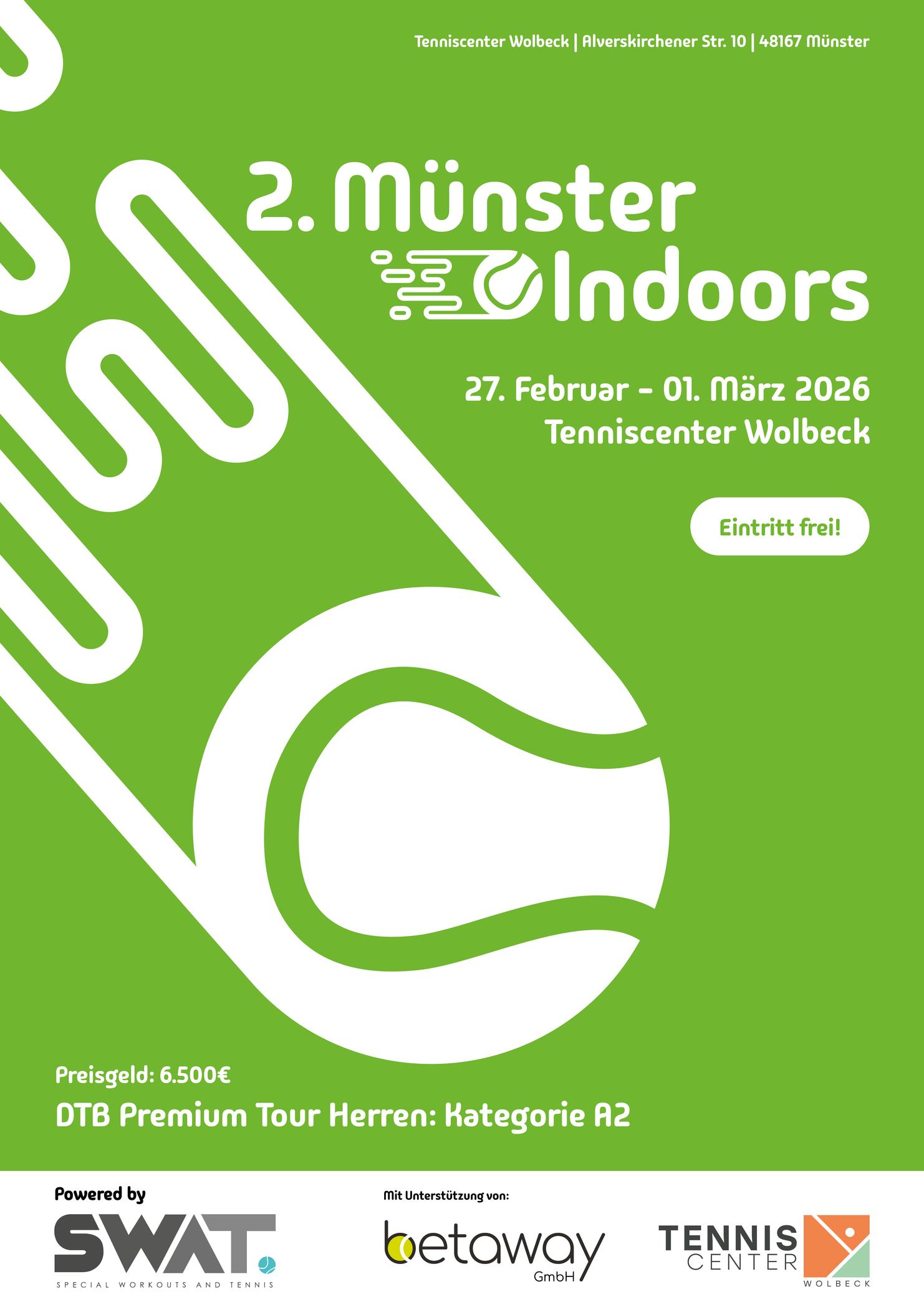 2. Münster Indoors, 6.500 € Preisgeld, Herren A2-P vom 27.2 bis 1.3.2026